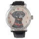 Uhr, Vintage Männeruhr mit schwarzem Lederarmband