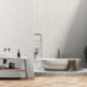 Thin blue pinstripes wallpaper on ecru, off-white color.