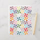 Ein Muster geometrischer Pinräder bildet einen quilt-ähnlichen Farbteppich. Sowohl modern als auch Vintag zugleich. Vielseitig und klassisch.