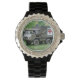 Uhr, Vintage Männeruhr mit schwarzem Lederarmband