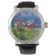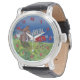 Uhr, Vintage Männeruhr mit schwarzem Lederarmband