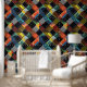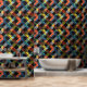 Dieses Kunstwerk zeichnet sich durch ein dynamisches und farbenfrohes Patchwork-Muster aus pixeligen, karton-ähnlichen Quadraten und Rechtecken aus. Das Design ist eine lebendige Mischung aus Farben wie Rot, Gelb, Blues und Grüntöne, Set vor einem schwarzen Hintergrund. Die pixeligen Elemente überlappen sich und überschneiden sich, wodurch ein Gefühl für Tiefe und Bewegung innerhalb der Komposition entsteht. Die Kombination aus geometrischen Formen und leuchtenden Farben, zusammen mit dem Effekt digitaler Pixel, verleiht dem Kunstwerk eine moderne, technisch inspiriert Ästhetik und ähnelt zugleich einem traditionellen Quiltmuster.