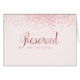 PixDezines Imitats Rose Goldconetti, Reserviert Tafelzeichen für jedes Party.. Stellen Sie Ihren zusätzlichen Text, mit Rose Gold / rosa Champagner-Skript-Schriftart mit DIY Hintergrund Akzent. Mit unserem dynamischen Design können Sie alle Elemente bearbeiten. Klicken Sie auf die Schaltfläche "Anpassen", um Bilder zu bearbeiten, zu drehen und Text / Monogramm hinzuzufügen.