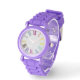 Uhr, Kinderuhr aus Edelstahluhr mit lila Lederarmband