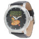 Uhr, Vintage Männeruhr mit schwarzem Lederarmband