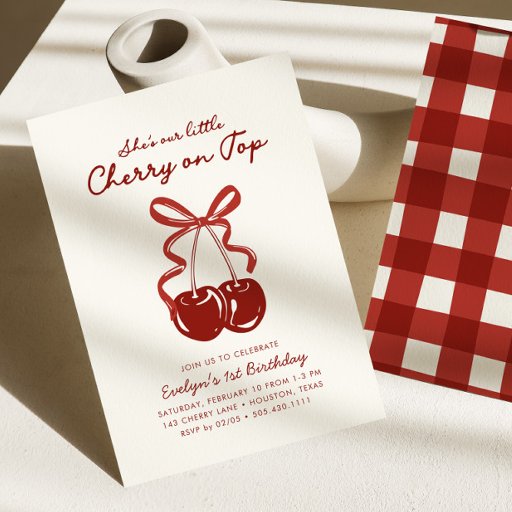 Celebrate your little girls birthday in the preppiest (but simplest) of ways with our incredibly cute Cherry First Birthday design!
