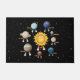 Farbige Illustrationen der acht Planeten und des Sonnensystems. Jeder Planet wird als Spaß und süße Figur dargestellt. Raumuniversum Design zeigt die Sonne in der Mitte und die Planeten Merkur, Venus, Mars, Jupiter, Saturn, Uranus und Neptun um sie herum. Ein niedliches Weltraum-Design für Kinder, Kinder, Kleinkinder, Weltraumliebhaber, Jungen und Mädchen. Diese astronomische Darstellung der Galaxie, der Sterne und der Planeten ist perfekt für ein Geburtstagsgeschenk, Kinderzimmer-Dekoration, Kinderzimmer-Kunst, Wohngestaltung, Weihnachtsgeschenk oder Geschenk für jeden anderen besondere Anlass.