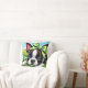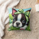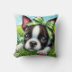 Playful Boston Terrier Puppy mit Green Bow Kissen