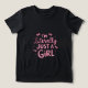 Ein lebhaftes rosa Design mit der Phrase "Ich bin buchstäblich nur ein Mädchen" in einem blubenweise handgeschriebenen Schriftart. Mit Bögen und Glitzern verkleidet dieses Kunstwerk eine spielerische und weibliche Ästhetik.