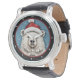 Uhr, Vintage Männeruhr mit schwarzem Lederarmband