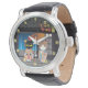 Uhr, Vintage Männeruhr mit schwarzem Lederarmband
