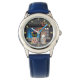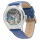 Kinderuhr aus Edelstahl mit blauem Lederarmband
