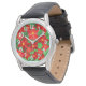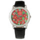 Die Armbanduhr dieser Männer hat ein Weihnachtsdesign von Poinsettias, die auf einem Feld von grünen Streifen verteilt sind.