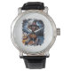 Uhr, Vintage Männeruhr mit schwarzem Lederarmband