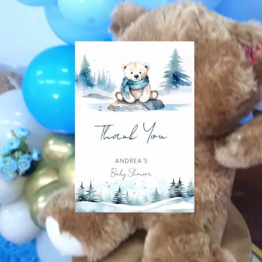 Polar Bären arktischen Winter können wir frühzeitig warten Baby Dusche Geschirr personalisierte Vorlage Teller, Aquarell niedlich polare Teddy Bär mit einem blauen Schal sitzend auf Eisfelsen Schneekiefern Winterthema Babydusche Willkommensschild personalisiert Babydusche Teller