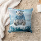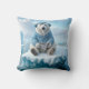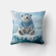 Ein Eisbär, der einen blauen Pullover, Ohrmuffe und einen Eisberg trägt, während er eine Zeitung mit dem Titel "Polar News" hält.