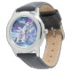 Uhr, Kinderuhr aus Edelstahluhr mit lila Lederarmband