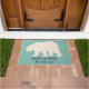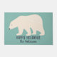 Legen Sie die Fußmatte für Feiertagsgäste, buchstäblich dar. Diese Fußmatte kennzeichnet eine Illustration eines polaren Bären in der Creme gegen einen hellen aquamarinen Hintergrund und Ihre eigene Wahl der Grußmitteilung und -namens Marineblaubeschriftung des Spaßes in der dunklen