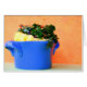 Ein schöner Kobalttopf hält sahnigen Polenta und tief-farbige sauteed Grüntöne.
