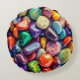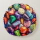 Round throw pillow with polished sea rocks in various colors and shapes.