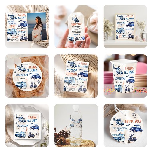 Police Boy 1. Geburtstag Party Foto Danke Karte