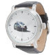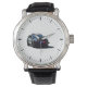 Uhr, Vintage Männeruhr mit schwarzem Lederarmband