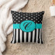 Dieses Design zeichnet sich durch ein kleines Polka Dot Design oben und ein gestreiftes Muster unten aus. Das Kissen wird dann mit einem türkisfarbenen Rahmen und einem Monogramm-Logo in der Mitte hervorgehoben. Mit dem benutzerfreundlichen Tool können Sie dieses Produkt mit Ihrem eigenen Initial personalisieren.