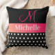Polka Dots Schwarz-weiß Pink Monogram Script Kissen