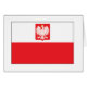 Ein schönes Bild der roten und weißen Staatsflagge Polens oder der polnischen Falkenflagge. Dieses einfache Design beinhaltet den weißen Adler auf einem roten Schild, das Wappen Polens.