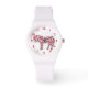 Sportliche weiße Mädchen rosa Herz Pferd pony Armbanduhr.