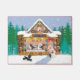 Ein lustiger Weihnachtsteppich, ein Türmchen für Poodle Yorkie und Hundefreunde. Das ist mein eigenes Design, das Poodles und ihre Freunde in einem Leckerei-Shop für Haustiere zeigt. Es ist Schnee auf dem Boden und Kiefern. Kanüle und Hundeknochen und vieles mehr sind für die Gäste da.