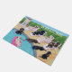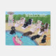 Poolside-Party Labradors Malerei-Willkommens-Fußmatte. Wunderliche und lustige Labrador retriever-Grafik durch Naomi Ochiai. Labradorwelpen genießen Poolside-Party in einem bestimmten Sommererholungsort!