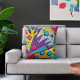 Pop Kunst bunt abstrakte Druckkissen. Dekorative Pop Kunst inspiriert Kissen in lebhaften Farben mit einem abstrakten Design von Formen und Splash von lila, rot, blau und gelb. Wenn Sie ein Retro-Ambiente in Ihr Wohnzimmer einfügen oder eine dunklere Couch aufhellen möchten, wird dieses Kissen genau das tun!