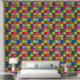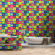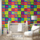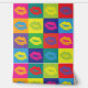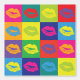 Pop Art Kiss Lips farbenfrohe Retro Muster Tapete. Große, fette Quadrate mit einem farbenfrohen Kuss-Zeichen innen.