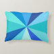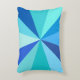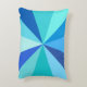 Dieses angesagte, Retro-60er-inspiriert rechteckige Possenkissen aus Pop hat psychedelisch blaue Strahlen / Sonnenaufgänge, die in einem geometrischen Muster herausschießen. Beide Seiten dieses trendigen, minimalistischen, ultra-Mod Kissendesigns haben zwölf Strahlen in verschiedenen Farbtönen von hellblau, von neon bis hell und dunkel. Es ist groovy, Baby.