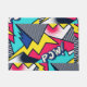 Graphic Pop Art Muster, mit niedlicher 'POW!' Typografie, gegen ein buntes abstraktes Muster. Kontaktieren Sie den Designer für spezielle Anfragen. © Copyright 2021 P.D., Vintages Comic Art. Alle Rechte vorbehalten.