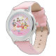 Kinderuhr aus Edelstahl mit rosa Lederarmband