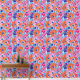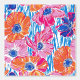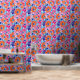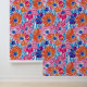Ein nahtloses Muster mit von Hand gezeichnet orangefarbenen und rosa Mohnblüten mit zarten blauen Strichen auf weißem Hintergrund. Das Design imitiert das Aussehen einer detaillierten Skizze, die den Charme und den Bio Fluss von Wildblumen auf einer Wiese einfängt