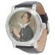 Uhr, Vintage Männeruhr mit schwarzem Lederarmband