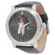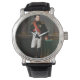 Uhr, Vintage Männeruhr mit schwarzem Lederarmband