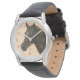 Uhr, Vintage Männeruhr mit schwarzem Lederarmband
