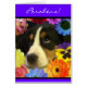 Cartao Postem portugues Para os Anos de Uma menina. Foto De um cãozinho e Flores. Grußkarte auf portugiesisch für den Geburtstag eines Mädchens mit Foto eines Welpen und der Blumen. Auch verfügbar im rosa Hintergrund und auf englisches und portugiesisch. Fotografie durch Maria Santos (Lusinhas tun Sul)
