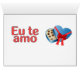 "Eu te amo" - "I Liebe you" auf Portugiesisch. Geben Sie diese schöne Karte am Valentinstag oder wann immer Sie Ihre Liebe zum Ausdruck bringen möchten. Kleine Herzen auf Streichern liegen auf einem betonierten Rahmen in der Morgensonne und werfen lange Schatten.