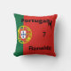 Portugiesischer Fußballspieler, der Punkto als Fußball verwendet, im Hintergrund die portugiesische Flagge. Anpassbar, ändern Sie Namen und Jerseynummer in Ihren Favoriten