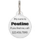Das Design zeigt eine originelle Marker-Illustration von Poutine, einem in Quebec, Kanada beliebten Gericht, das mit Pommes frites überzogen ist, die mit Käsesalben und braunem Grab überzogen sind. Ideal für Ihren Lieblings-Feinschmecker! Personalisieren Sie sich einfach mit den Informationen Ihres Haustieres.