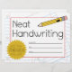 Prämienzertifikat für saubere Handschrift