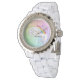 Eine wunderbare Damenuhr mit weißem Armband und grün-weiß-kariertem Ziffernblatt. Trägt sich ganz fabelhaft. Exzellenter Druck, sehr klare Farben. Schönes Design.