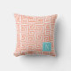 Preppy Greek Key Monogram – Coral & Turquoise Kissen