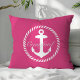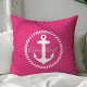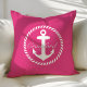 Preppy Hot Pink & White Nautic Anchor Monogram Kissen