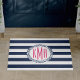 Begrüßen Sie Ihre Gäste mit diesem klassischen nautischen Streifen vor der Tür! Diese gestreifte Begrüßungsmatte ist ideal für Strandhäuser, Hauswärmer-Geschenke und alle, die den nautischen Stil Lieben, und verfügt über breite marineblaue und weiße Bänder sowie ein Abzeichen für Wasserseile. Ihre drei ersten Monogramme werden in der Mitte in der heißen magentafarbenen rosa Schrift platziert.